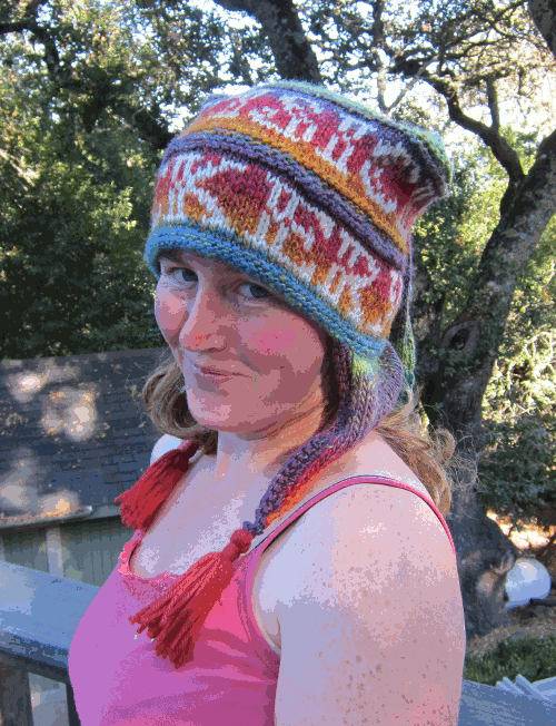 Yes, I am sending a mobile yarnbomb to Finland, on the head of one of my favorite people, and I couldn’t be more pleased. I love this hat to death, especially the rear view.